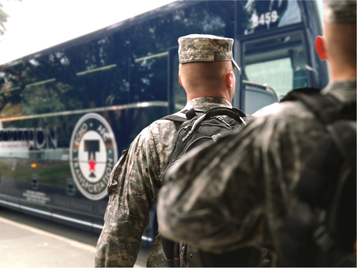 ECHO AFC Transportation holds the distinction of being DOD-certified for the transport of military personnel. WE are dedicated to offering top-tier charter bus services tailored specifically for military groups, individuals, and their families, accommodating a variety of needs including military relocations, recruit travel, training center commutes, as well as airport and rail transfers. Our commitment to safety and compliance aligns with the rigorous standards set by the Department of Defense.
