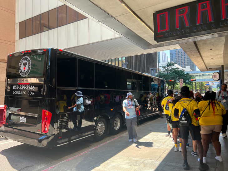 ECHO AFC Transportation specializes in charter airport shuttle services. Our diverse fleet, including motorcoach buses, luxury minibuses, and sprinter vans, offers pickups for groups from any hotel or location across Texas, destined for any airport within the state. We cater to groups starting from a minimum of 12 passengers without any upper limit, boasting our largest bus's capacity of 56 passengers.